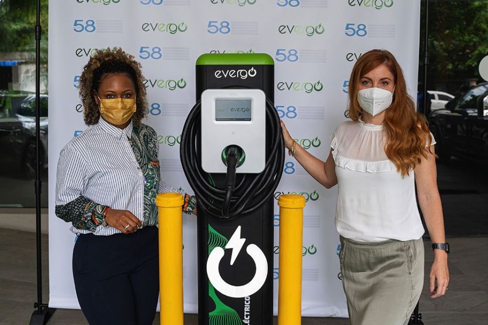 Panamá, 20 de abril de 2021. – Evergo, la red de estaciones de carga eléctrica más sofisticada y limpia de la región, inauguró dos nuevas estaciones de carga en Plaza 58, Obarrio, como parte de su objetivo de instalar 200 estaciones de carga a lo largo del territorio nacional en 2021. Una de las estaciones está ubicada en el estacionamiento externo de la plaza, mientras que otra está en el estacionamiento interno, a disposición de los colaboradores que laboran en las oficinas de la plaza.