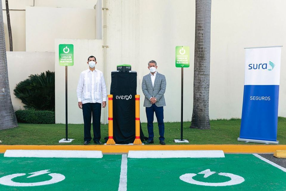 Santo Domingo, 04 marzo 2021. SURA reafirma su compromiso en el desarrollo de alternativas sostenibles siendo la primera aseguradora que crea un área de carga eléctrica en alianza con Evergo, plataforma de estaciones para vehículos eléctricos más avanzada y sofisticada del país.