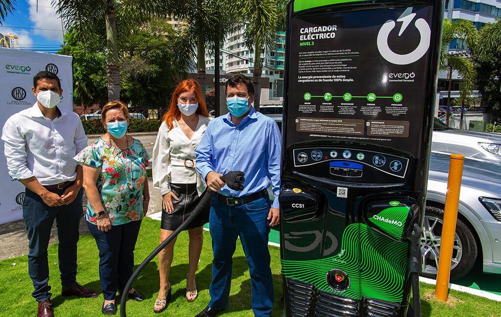 Panamá, 31 de agosto de 2021. – Clínica Hospital San Fernando se suma a los esfuerzos por promover la movilidad eléctrica en Panamá al convertirse en el primer hospital panameño en contar con dos estaciones de carga para vehículos eléctricos impulsadas por energía 100% renovable, gracias a la plataforma Evergo, que forma parte del portafolio de InterEnergy Group.